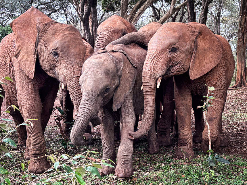 Alia est une petite fille douce au caractère discrètement courageux. Sauvé lors d'une opération menée à la dernière minute, elle s'adapte désormais à sa nouvelle vie à la nurserie. Dans l'après-midi du 15 octobre 2025, nous avons reçu des informations faisant état d'un possible orphelin dans la réserve de Lumo. Notre équipe de Voi s'est rendue sur place et a trouvé un éléphanteau très maigre et affaibli qui semblait souffrir depuis un certain temps déjà. Il n'y avait aucun autre éléphant dans les environs. La nuit approchant, le temps pour la secourir était compté. Heureusement, elle n'a opposé que peu de résistance et a été rapidement emmenée sans incident dans notre enclos de Voi situé à proximité. Nous avons baptisé la petite orpheline Alia, d'après le nom d'une colline située près du lieu où elle a été secourue. À Voi, Alia a été installée dans l'enclos voisin de celui de la jeune Daba, qui avait été secourue deux semaines plus tôt. Il a grogné vers elle, peut-être pour la rassurer et lui faire comprendre qu'elle était entre de bonnes mains, et les deux orphelins se sont salués en se touchant doucement la trompe. Après avoir laissé Alia se détendre pendant quelques jours, nous l'avons transférée avec Daba à la nurserie. Les deux bébés étaient nettement plus jeunes que le reste du troupeau de Voi et allaient bénéficier des soins attentifs et de la surveillance bienveillante offerts par la nurserie. Daba a été transporté par avion en premier, suivi d'Alia le lendemain. Elle a été installée à côté de Nyambeni et Taroha, deux orphelins connus pour être gentils et accueillants envers les nouveaux arrivants. Alia a passé deux semaines à reprendre des forces et à s'adapter à la vie à la nurserie. La petite éléphante effrayée et douloureusement maigre que nous avions sauvée a commencé à se calmer et à prendre du poids. Finalement, elle a été assez forte pour rejoindre le troupeau dans la forêt. Nous l'avons escortée jusqu'à une petite clairière, où les filles plus âgées l'ont accueillie avec de doux grognements. Nyambeni et Mzinga ont été particulièrement accueillantes, la touchant avec leur trompe et l'encourageant à s'approcher. Au cours des semaines qui ont suivi, Alia est lentement sortie de sa coquille. Alors qu'elle gardait initialement ses distances avec les gardiens, elle a commencé à se rapprocher petit à petit. Un matin, le gardien Peter a eu l'agréable surprise de la trouver debout juste à côté de lui, la trompe levée en signe de salut. Alia s'est constitué un groupe d'amis petits et gentils. Elle affectionne particulièrement Daba, qui l'accompagne depuis le début de son parcours. Wamata et Taroha se sont également montrées très accueillantes et veillent souvent sur les deux nouvelles venues. Nous avons toujours pensé qu'Alia et Arthi deviendraient proches : ils ont le même âge et ont des personnalités compatibles. Cependant, ces similitudes ont peut-être initialement poussé Arthi à voir Alia comme une rivale, et il ne s'est pas montré très chaleureux envers elle au début. Le petit Daba a joué le rôle de médiateur, se liant d'amitié avec Arthi avant de rapprocher progressivement les deux éléphants. Aujourd'hui, il est courant de voir le trio brouter tranquillement côte à côte. Outre Daba et les gardiens, Alia a toute une troupe de nounous qui veillent sur elle. Nous nous en sommes souvenus un matin où Olomunyak est tombé sous l'influence malicieuse de Pardamat. Les deux garçons harcelaient Alia et essayaient de la chevaucher pour jouer. Avant que nous puissions intervenir, Nyambeni s'est interposée. Elle a acculé Pardamat et l'a éloigné du troupeau, puis a donné à Olomunyak l'ordre de partir. Une fois la situation réglée, Nyambeni s'est tournée vers Alia, l'a touchée avec sa trompe et l'a ramenée vers le groupe. Les orphelins sauvés à un âge plus avancé sont souvent comme des bourgeons qui attendent de s'épanouir : ils mettent plus de temps à s'adapter à leur nouvelle vie, mais une fois qu'ils y parviennent, leur personnalité haute en couleur se révèle. C'est ce qui commence à se produire avec Alia. Notre petite fille autrefois réservée et nerveuse montre désormais un nouveau côté plus confiant.