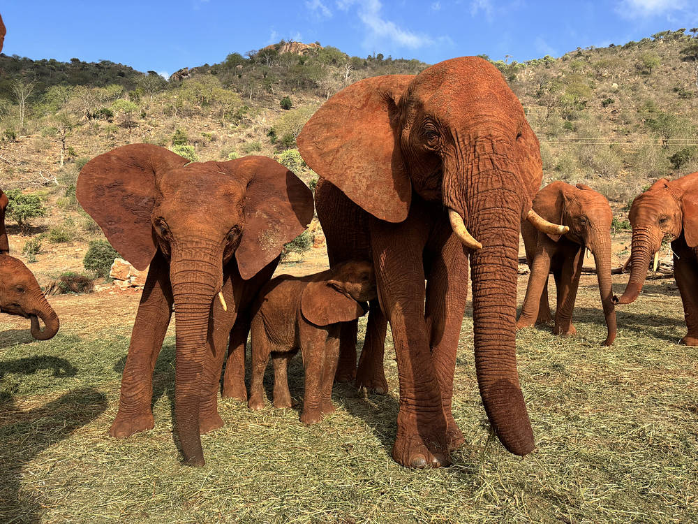 Le premier est arrivé le 12 novembre. Nous nous sommes réveillés avec une nouvelle très excitante : l'ancienne orpheline Naipoki avait donné naissance à un petit mâle ! La nouvelle maman s'est rendue dans l'enclos pour présenter son fils aux gardiens qui l'avaient élevée. Lorsque Naipoki et le petit Nsimba ont remonté le chemin, l'excitation était à son comble. Les orphelins actuels et anciens l'ont accueillie en grognant et en tendant leur trompe.