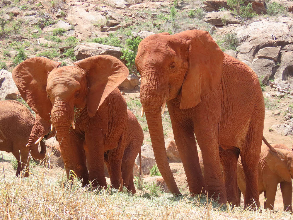 Les troupeaux d'anciens orphelins d'Edie et de Mweya nous rendaient régulièrement visite tout au long du mois, et la plupart des matins commençaient par un grand petit-déjeuner pris en commun. Les orphelins dépendants sortaient de leurs enclos communs à l'aube, et les visiteurs — Mweya avec ses bébés Mwitu et Mwangaza, Edie avec ses bébés Eden, Eco, Enzo et Enid, Mbirikani avec son bébé Mica, Panda avec son bébé Panya, Kihari avec son bébé Kiki, Arruba avec son bébé Aura, Sagala avec son bébé Sia, Mudanda, Tundani, Kenia, Ndii, Pika Pika, Ndoria, Mbegu, Ngilai, Ndotto, Tagwa, Godoma, Suswa, Naipoki, Rorogoi, Tamiyoi et Lasayen — sortaient de la brousse quelques minutes plus tard.