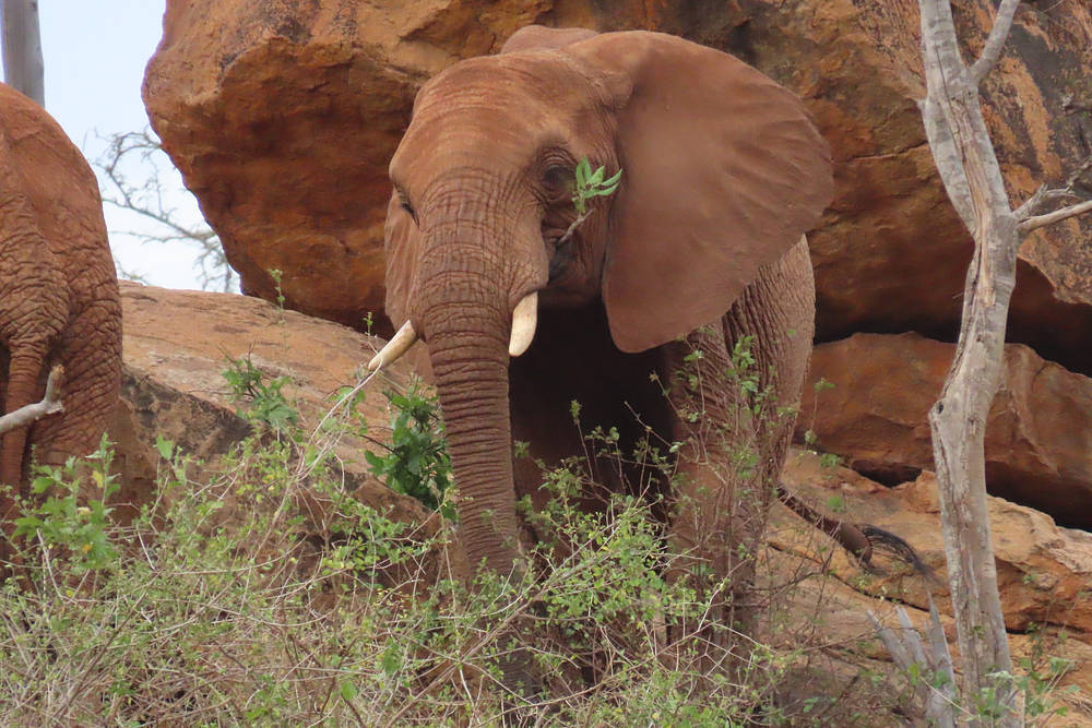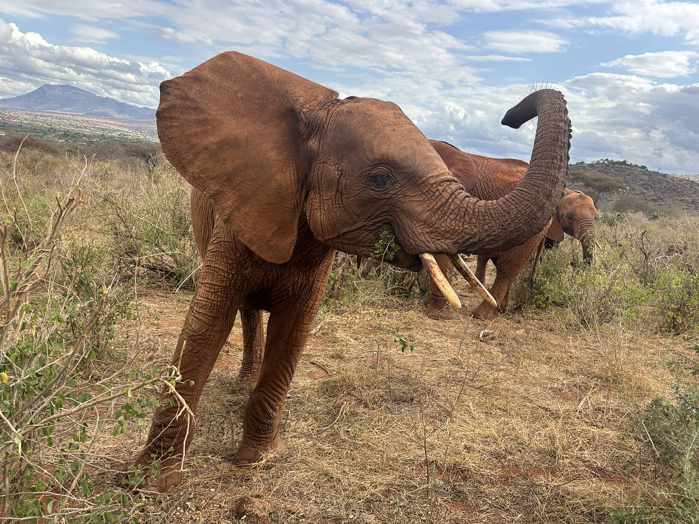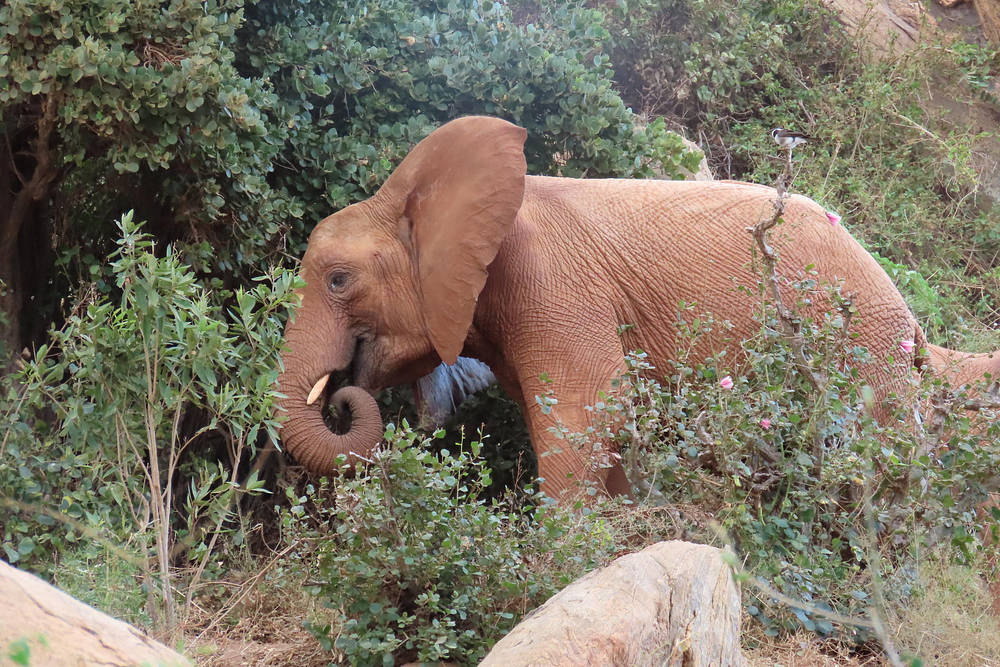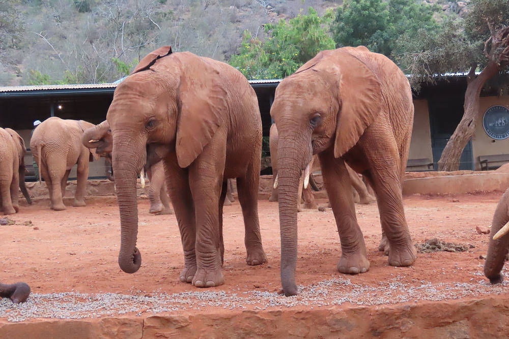 Nos jeunes anciens orphelins continuent de rendre visite au troupeau dépendant presque tous les jours. Nous pouvons généralement compter sur Mbegu, Tagwa, Godoma, Ngilai, Ndotto et Murit pour se présenter dès l'aube afin de partager le pâturage matinal avec les orphelins. Certains jours, Naipoki, enceinte de plusieurs mois, était avec eux. Un matin, au lever du soleil, les gardiens ont trouvé Ndotto en train de faire une sieste sur le monticule de terre rouge juste à l'extérieur de l'enclos, nostalgique de son foyer !