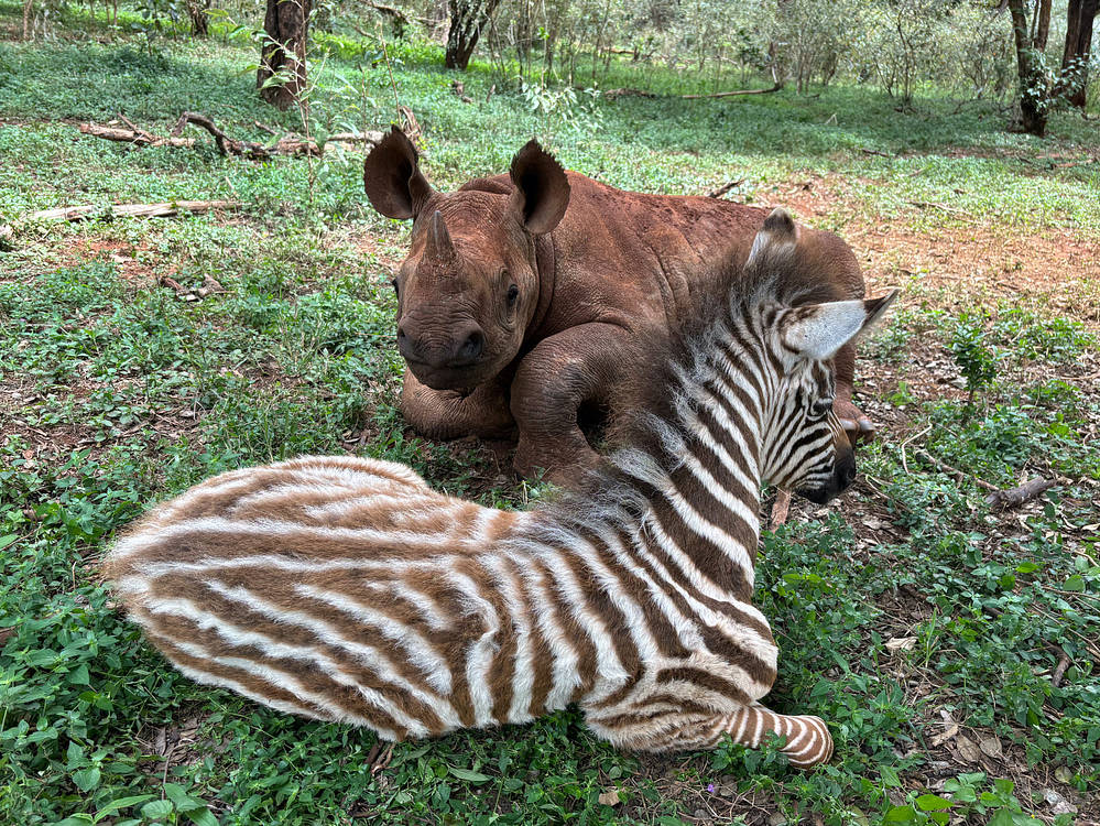 Les relations entre les autres rhinocéros sont moins tumultueuses. Alors que Max apprécie la compagnie des phacochères résidents, Tytan est le meilleur ami de Notty, le zèbre. Les deux animaux se promènent ensemble dans la forêt, un peu plus tard que les éléphants, et s'installent généralement pour brouter à une courte distance des enclos. Après avoir rempli leur estomac, ils s'allongent, non pas pour dormir, mais simplement pour se reposer ensemble sur l'herbe. Notre duo improbable passe la plupart de ses journées à quelques mètres l'un de l'autre !
