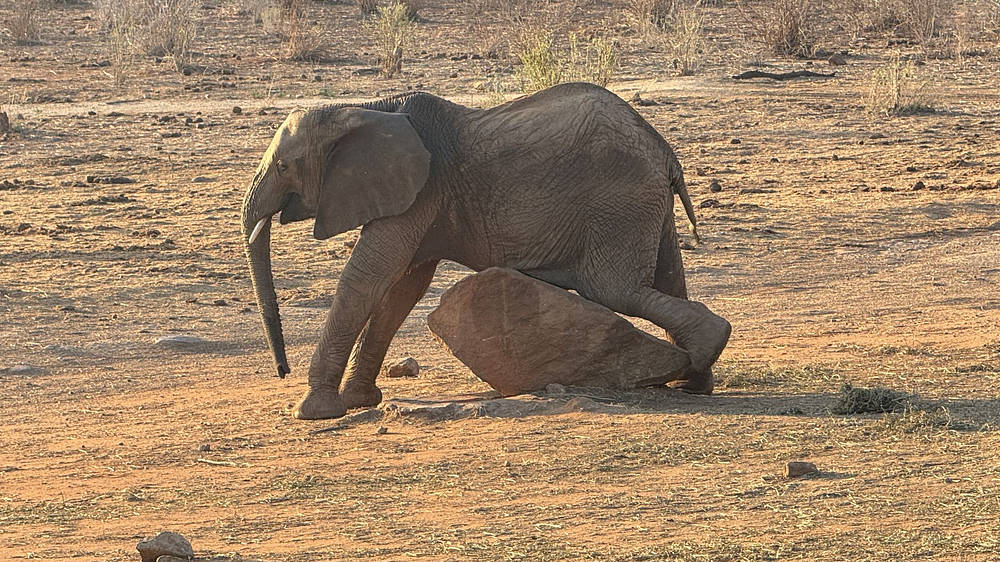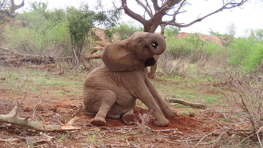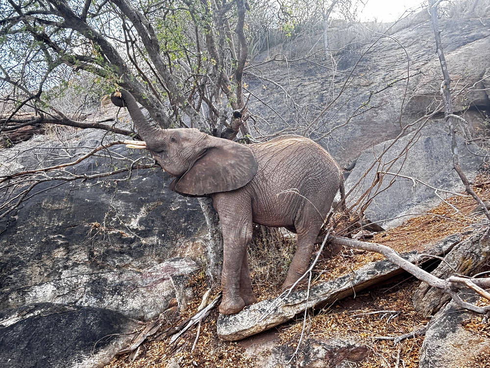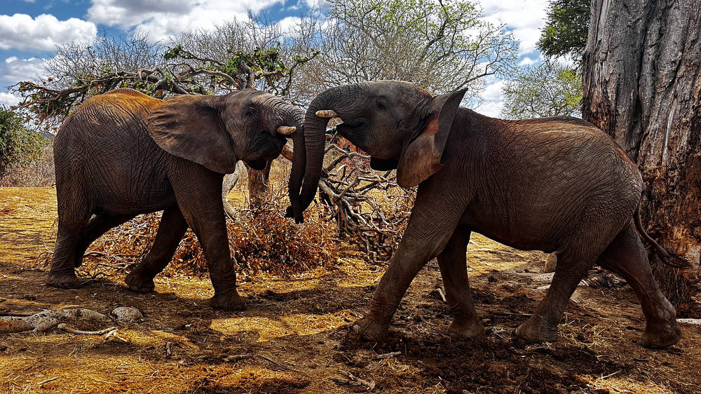 Nous considérons les mâles comme le sexe compétitif des éléphants, car ils testent toujours leur force, mais les femelles aiment aussi les concours ! Un jour, les orphelins se sont installés pour brouter dans la région de Kone. Bondeni, Olorien et Kinyei ont fait un concours pour voir qui pourrait atteindre les feuilles des arbres les plus hauts en marchant sur des rochers pour se grandir. Kinyei a remporté le concours, car elle est légèrement plus grande que les deux autres.