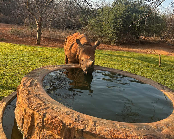 Chamboi a passé un bon mois sans incident. C'est un animal drôle, comme le sont souvent les rhinocéros noirs. Il peut parfois être assez imprévisible et capricieux. D'autres fois, il est remarquablement patient et doux. Il est devenu très ami avec Gruff, notre plus jeune buffle orphelin. Nous les voyons souvent se frotter le museau, se cogner la tête ou se vautrer ensemble dans le bain de boue.