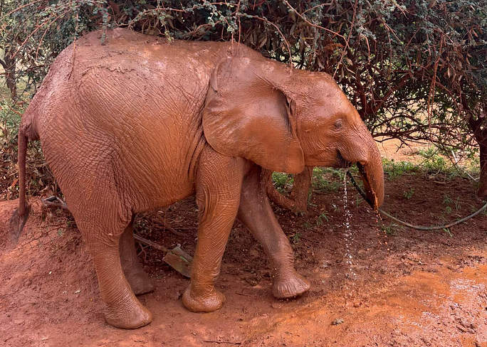 Nous avons passé un moment merveilleux avec Mwinzi ce mois-ci. C'est généralement un mâle calme et posé, mais un matin mémorable, il se sentait libre, insouciant et d'humeur à se montrer. Alors que le troupeau se dirigeait vers la brousse, une chambre à air bien gonflée a attiré son attention. Il n'a tout simplement pas pu résister. Il s'est roulé dessus, a tenté un poirier improvisé, l'a frappé de coups de pied dans tous les sens, puis a essayé d'écraser son gros corps dans le trou du beignet. Les gardiens le lui ont roulé, il l'a renvoyé d'un coup de pied, et ainsi de suite. C'était inhabituel mais merveilleux de le voir si enjoué !