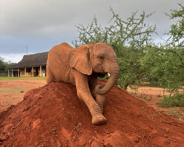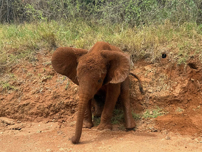 Le mois de février nous a offert un moment tout à fait charmant. Des éléphants sauvages ont rendu visite au petit bain de boue de KAIKAI pendant la nuit, et au matin, il ne restait plus que leurs empreintes. Lorsque KAIKAI est arrivée pour son bain de boue de midi, elle a marché sans le vouloir dans l'une de ces empreintes géantes, grandes comme des assiettes. C'était comme si elle marchait vers son avenir : pour l'instant, ses quatre petites pattes tiennent dans une seule empreinte, mais dans de nombreuses années — et après de nombreux pas —, elle laissera sa propre empreinte dans la nature sauvage de Tsavo.