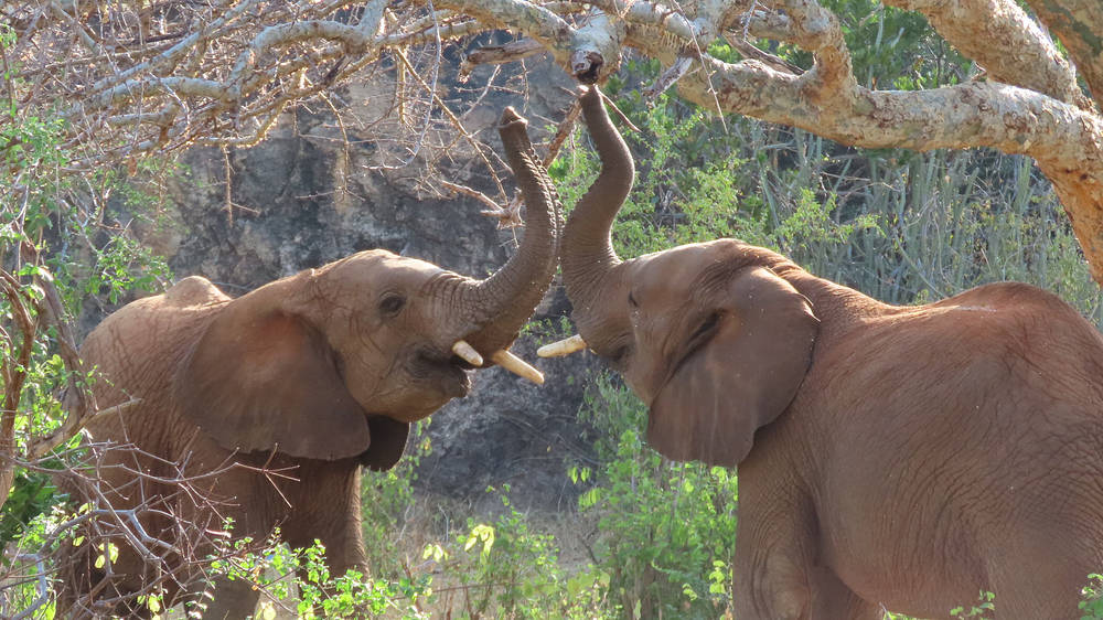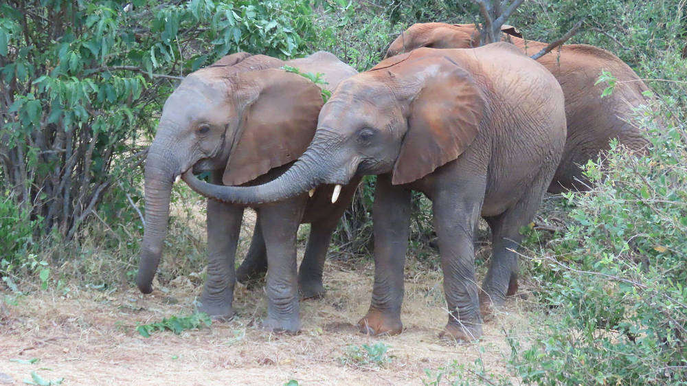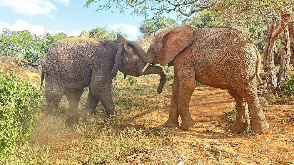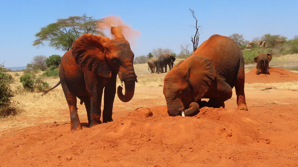 Une autre fois, Bondeni et Loldaiga sont tombés sur un petit point d’eau et se sont aussitôt disputés pour savoir qui boirait en premier. Pendant que les deux mâles se bousculaient, Kindani et Shujaa se sont approchés tranquillement et se sont servis, éclaboussant joyeusement l’eau avec leur trompe. Lorsque Bondeni et Loldaiga se sont lassés de leur querelle, le point d’eau n’était plus qu’une mare de boue. Ils ne pouvaient s’en prendre qu’à eux-mêmes.