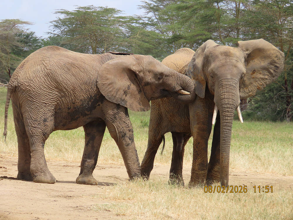 Les mâles plus âgés ont testé les limites de leur territoire ce mois-ci. Un soir, Latika, Kerrio et Kamili ont pris l’initiative de ramener le troupeau vers les enclos, mais Kapei et Maktao sont restés en arrière dans la brousse. Kapei était resté caché avec Mwashoti et Sonje, les gardiens savaient donc qu’il était entre de bonnes mains. Tard dans la nuit, ils ont entendu des éléphants s’abreuver à l’extérieur des enclos et sont allés voir ce qui se passait. Ils ont découvert qu’il s’agissait de Kapei et Maktao, accompagnés de quelques amis sauvages — peut-être que les mâles voulaient montrer à leurs nouveaux camarades l’endroit où ils avaient grandi !