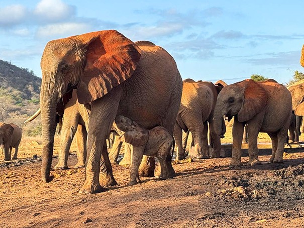 Le premier jour du mois, Kalama, ancienne orpheline, est arrivée à l'aube avec son précieux petit bout de chou. La jeune maman n'a pas perdu de temps pour présenter sa fille, que nous avons baptisée Kapuki, à sa famille d'Ithumba.