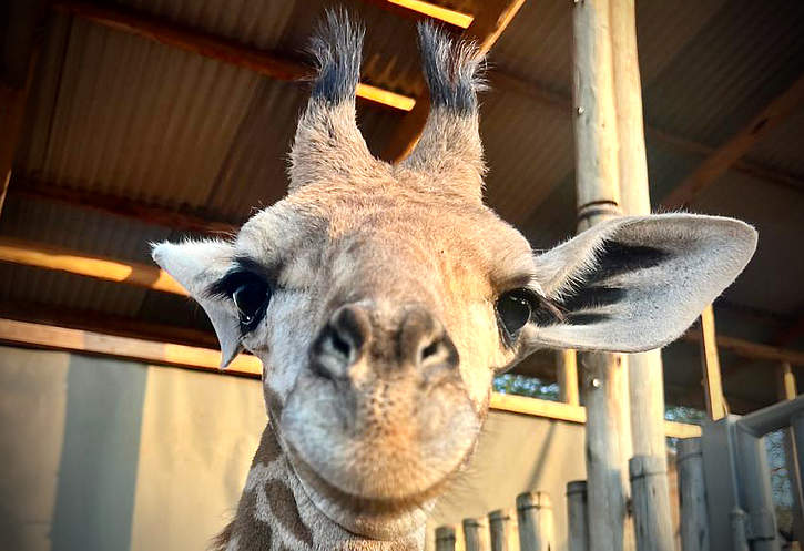 Pips était complètement épuisée lorsqu'elle est arrivée à Kaluku. L'équipe l'a transportée avec précaution dans l'enclos qui l'attendait et lui a immédiatement donné une bouteille de réhydratation. L'effet a été presque immédiat : soudain, la girafe affaiblie est revenue à la vie sous nos yeux.À la tombée de la nuit, Pips était complètement accrochée à ses gardiens. Après avoir longtemps dû se débrouiller seule, elle était clairement soulagée d'avoir été sauvée. Les gardiens étaient tout aussi séduits et se relayaient pour brosser la petite girafe délicate.