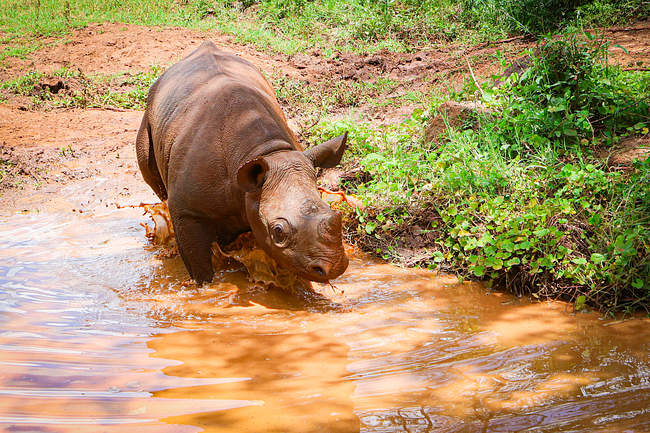 Tytan est un petit rhinocéros noir courageux qui a survécu à une chute dangereuse du haut d'une falaise et à deux nuits passées seul avant d'être sauvé.